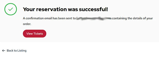 8. From the Your Reservation was Successful screen, click on View Tickets.